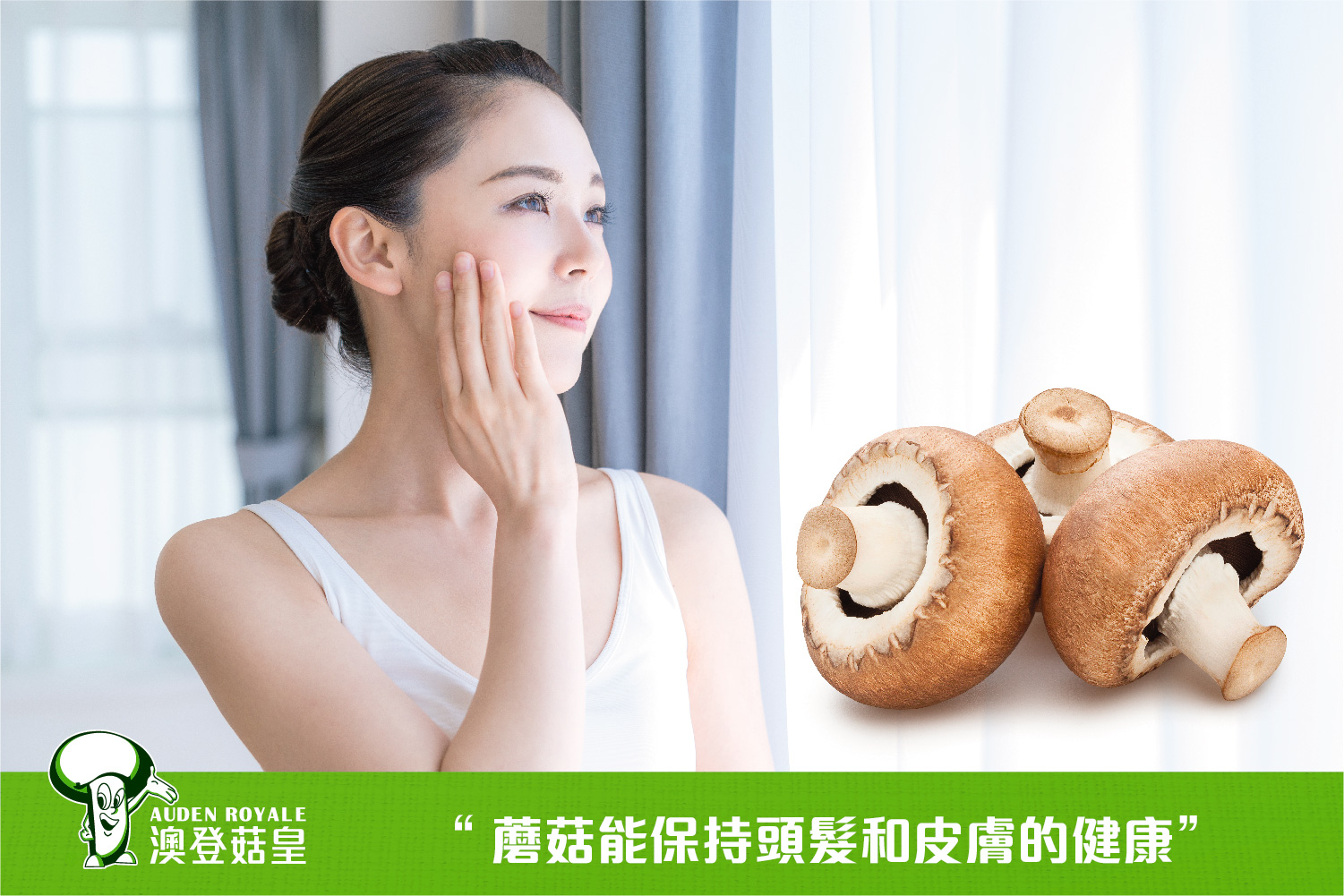 蘑菇中的基本營養素: 硒、銅、生物素、煙酸和核黃素;特別有益於保持皮膚和頭髮的健康。且蘑菇含有極低的碳水化合物,基本上對血糖無影響,有助於減少粉刺。當然,蘑菇中的維生素D也有助於皮膚的健康!
