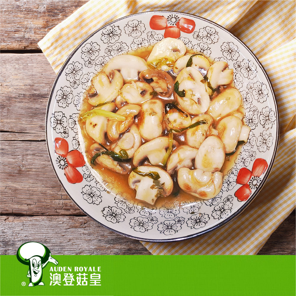 3.待白蘑菇快熟的時候,下鮑魚汁調味。