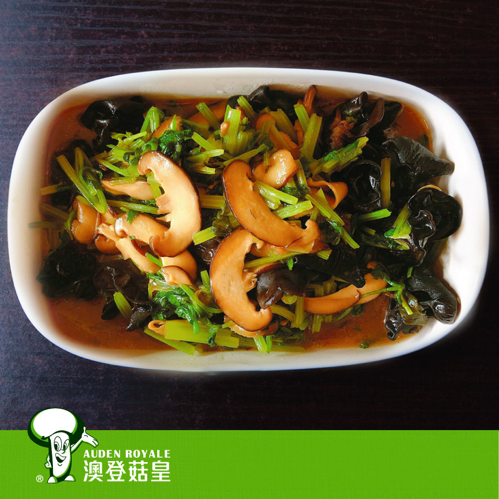 2.Heat oil in a saucepan over medium-high heat. Add shallot stir-fry until fragrant. Add mushrooms and cook for 2 minutes,and add celery and agaric cook for 3 minutes or until at your desired. Season with sugar, soy sauce, salt and pepper.